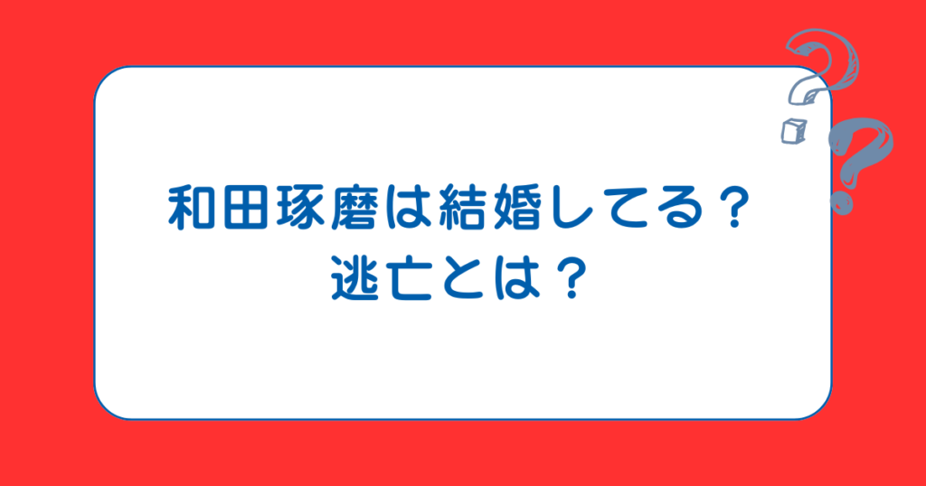 和田琢磨は結婚してる?逃亡とは?天てれに出演してた?