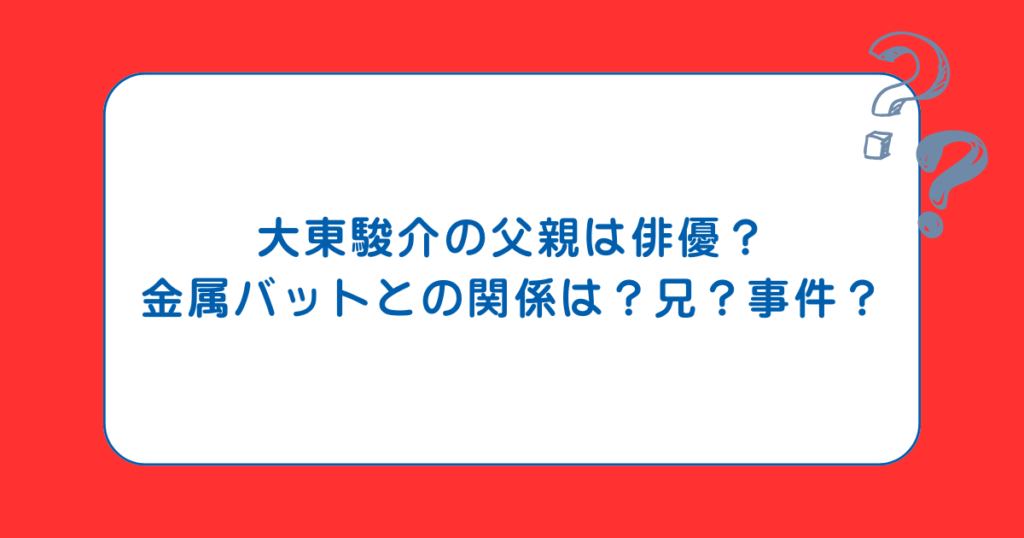 大東駿介の父親は俳優?金属バットとの関係は?兄?事件?