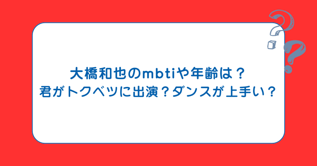 大橋和也のmbtiや年齢は?君がトクベツに出演?ダンスが上手い?