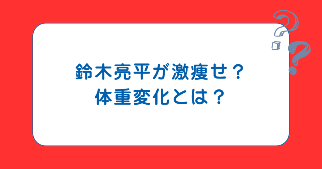 俳優の鈴木亮平さんが激痩せした姿を見て、「どうやって痩せたの?」「体調は大丈夫なの?」と気になった方も多いのではないでしょうか。 鈴木亮平が激痩せした理由は、実は役作りのためだったんです。この記事では、その驚きの減量方法や体重の変化、さら... 未分類